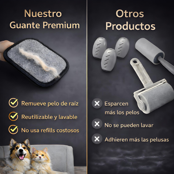 | Característica | Guante quita pelos | Rodillo adhesivo |