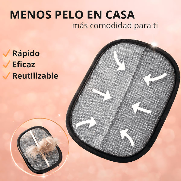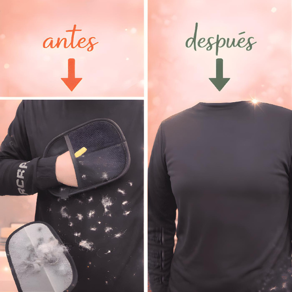 Pasa el guante y los pelos se van al tiro. Sofás, ropa y camas limpias otra vez, sin esfuerzo.
