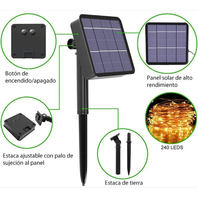 ✅ Paquete incluye: 1 Cadena de Luces LED - 1 Panel Solar.