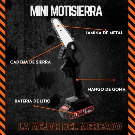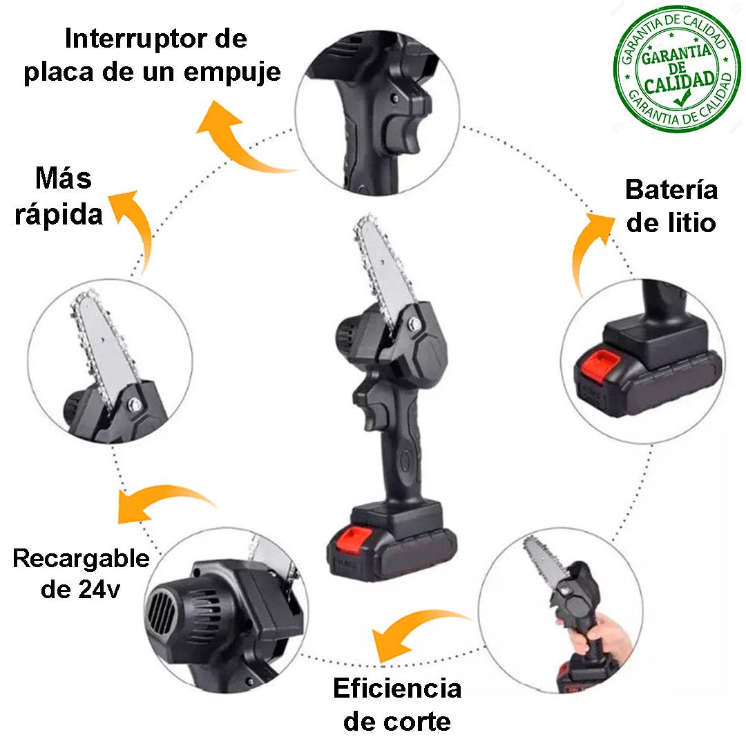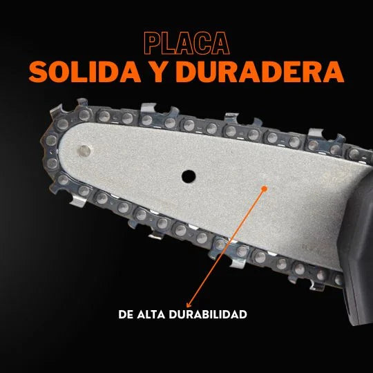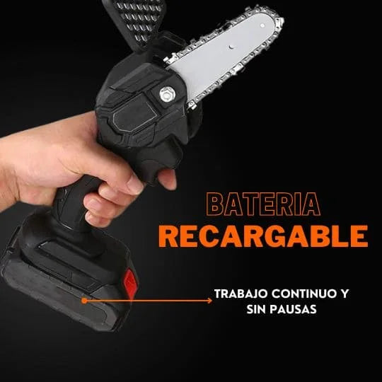 La mini motosierra funciona con batería recargable de 20 V. Cada batería se puede usar durante aproximadamente 30 minutos , y podrás alternarlas para mayor rendimiento.
