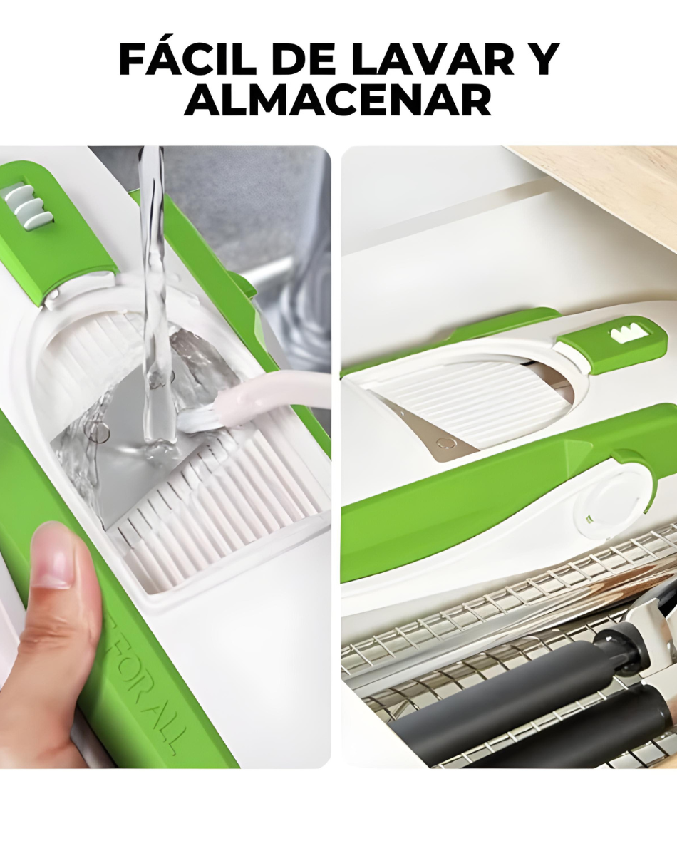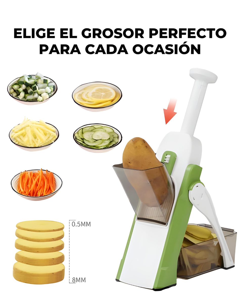 Tu aliado diario para comer más sano con menos esfuerzo. Cortes perfectos, manos seguras y cero estrés en la cocina.