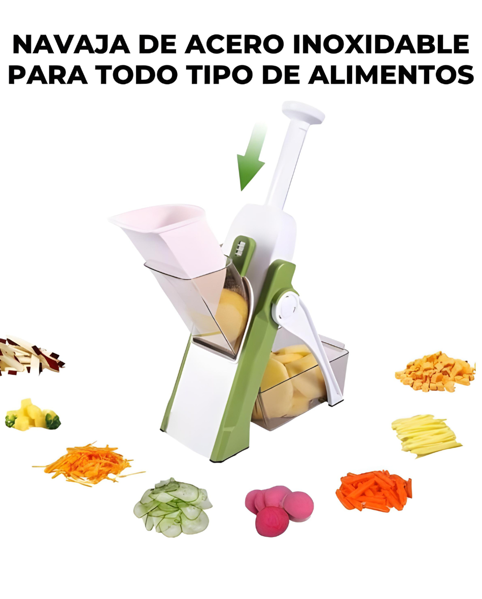 - ✔️ Incluye: mandolina, alimentador, empujador y contenedor