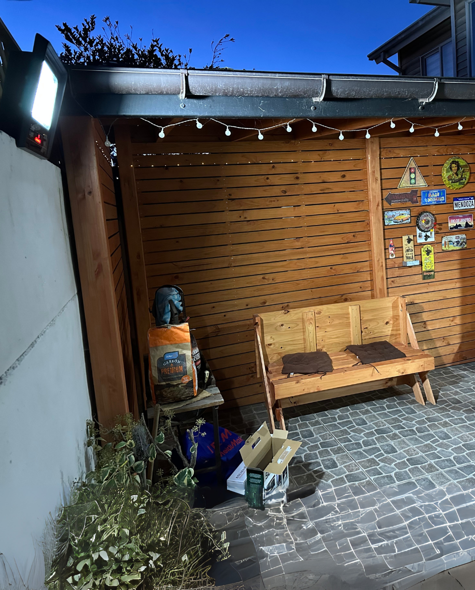 ⭐⭐⭐⭐⭐ Carla P.: Lo puse en la entrada de la casa y alumbra toda la noche. Se ve seguro y no gasto nada en luz.