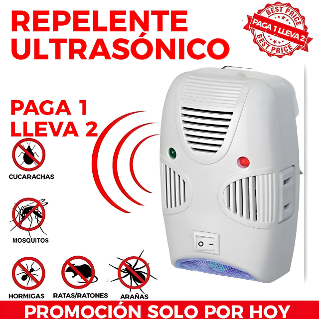 El Repelente Ultrasónico Premium crea un entorno hostil para plagas sin dañar a tu familia. Ideal para eliminar ratones, cucarachas, arañas, hormigas y más, sin usar venenos, sin olores, sin riesgos. Solo conéctalo y disfruta de un hogar limpio y seguro.
